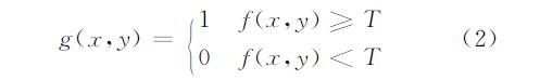 設(shè)輸入圖像為f(x,y),輸出圖像為g(x,y),用得到的分割閾值T對圖2(a)進行處理,得到圖2