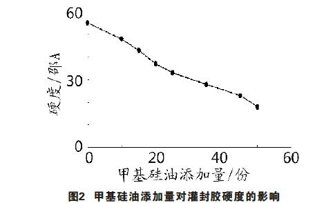 (2) 隨著甲基硅油添加量增加,膠料混合后的黏度和硬度不斷減小,甲基硅油較佳添加量為40份;